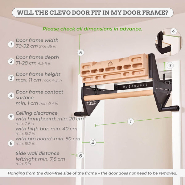 - CLEVO Door with hangboard min. 20 cm (7.8 in)